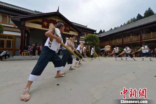 4月1日,巴中市平昌县民间艺人表演当地巴山民俗文化“翻山铰子”。 高寒 摄