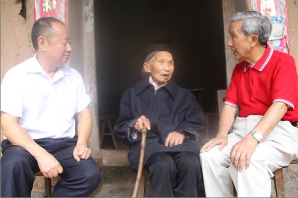 值纪念中国人民抗日战争暨世界反法西斯战争胜利70周年和红军长征入川80周年之际,为弘扬红军精神,继承革命意志,进一步激发爱国热情。8月19日,受局、委领导的委托,我委总支部副书记、工会主席文兴敏陪同川陕苏区将帅碑林纪念馆终身名誉馆长张崇鱼等一行五人赴巴州区鼎山镇、龙背乡拜访了赵楚碧、胡天文、王少连三位老红军并送去了慰问礼品。拜访中,我们认真聆听了三位老红军的革命历程,详细询问了老人的生活情况、身体状况及目前所存在的困难,多次叮嘱老人要保重身体,并转达了局、委领导对(她)他们的祝福。(审核:文兴敏)